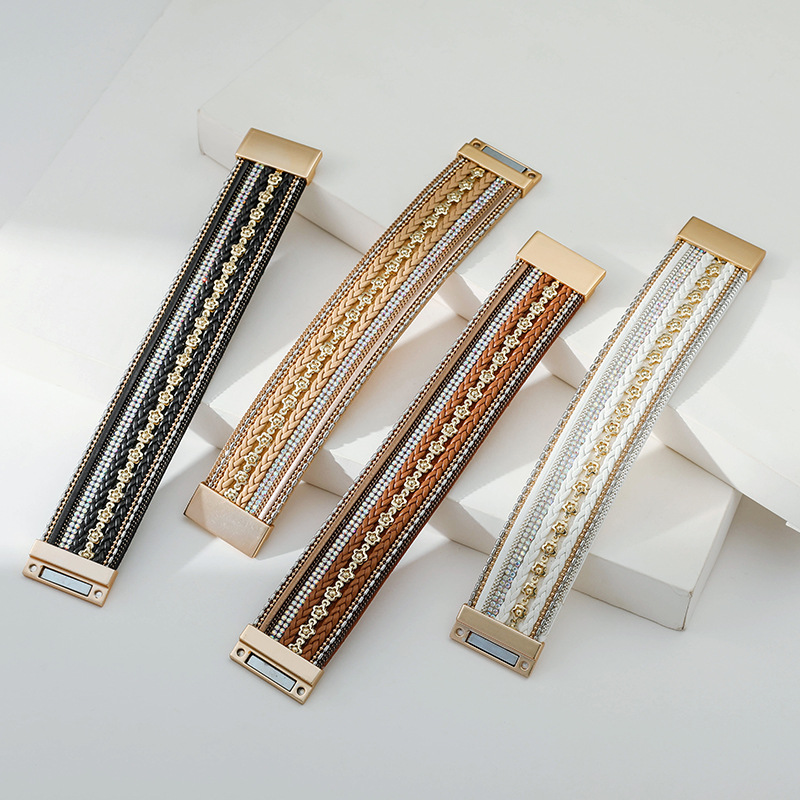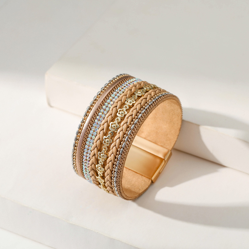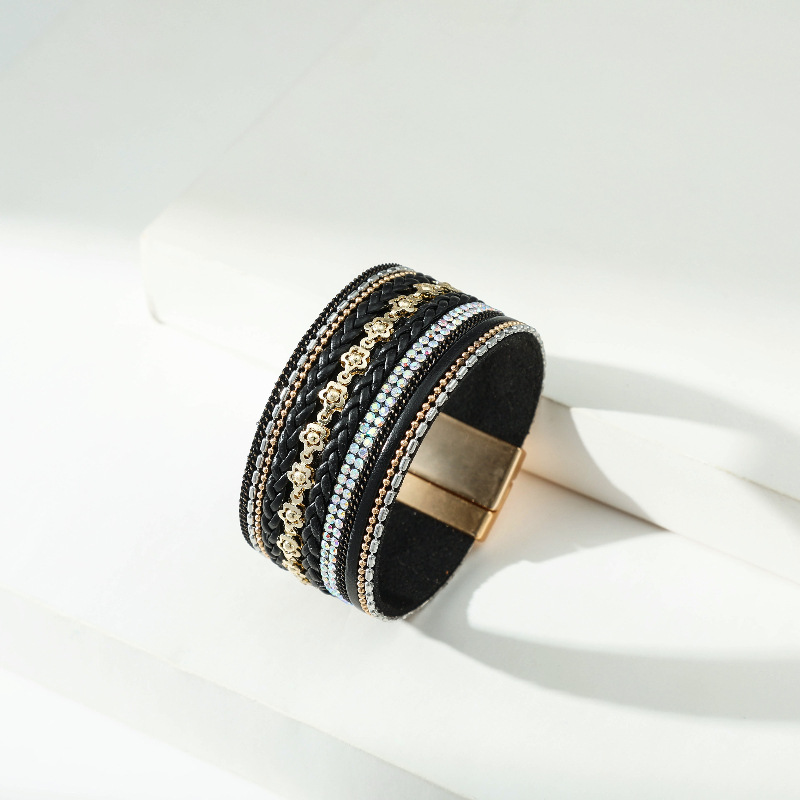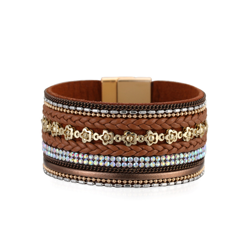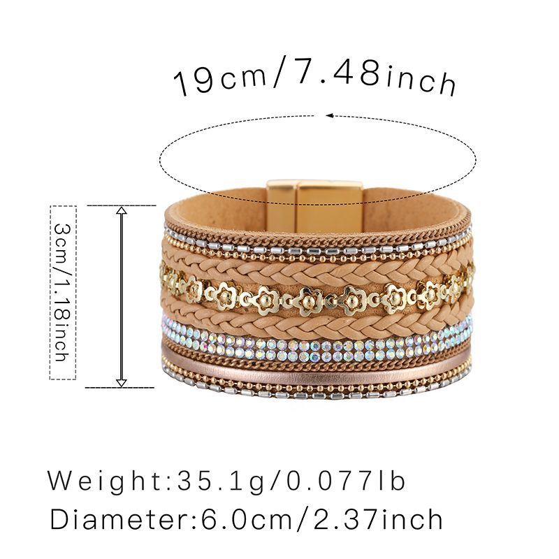 Nature-Inspired Beauty: Our Unisex Bohemian Flower Elements Braided Leather Bracelet with Magnetic Buckle captures the essence of bohemian chic.