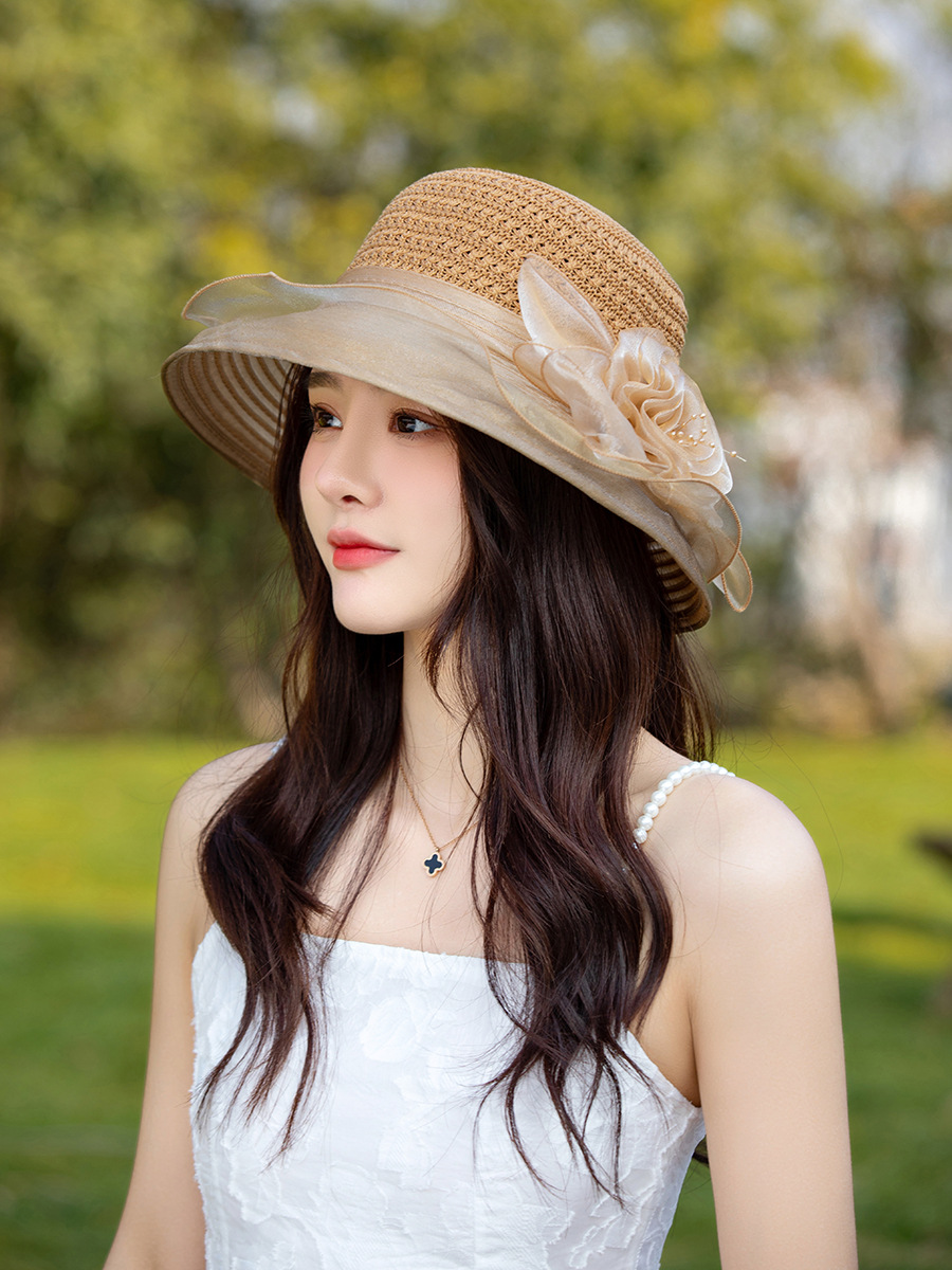 Women's Summer Flower Organza Breathable Sunscreen Sun Hat